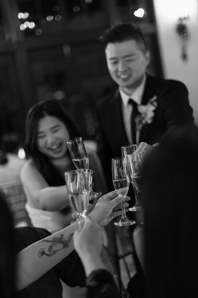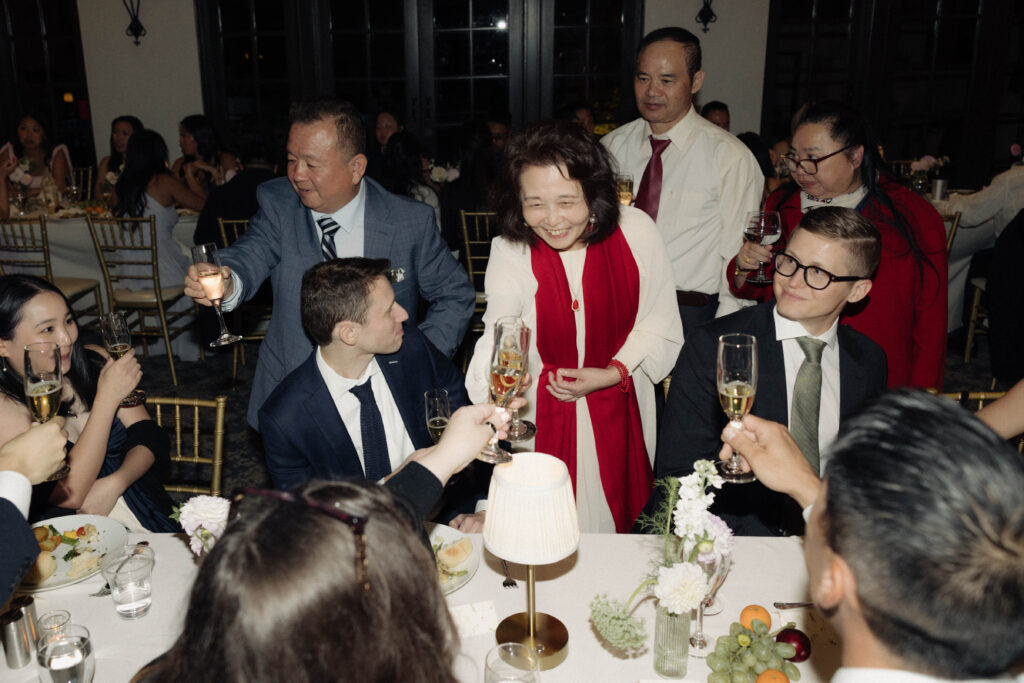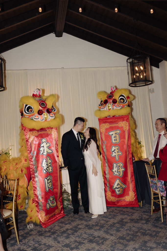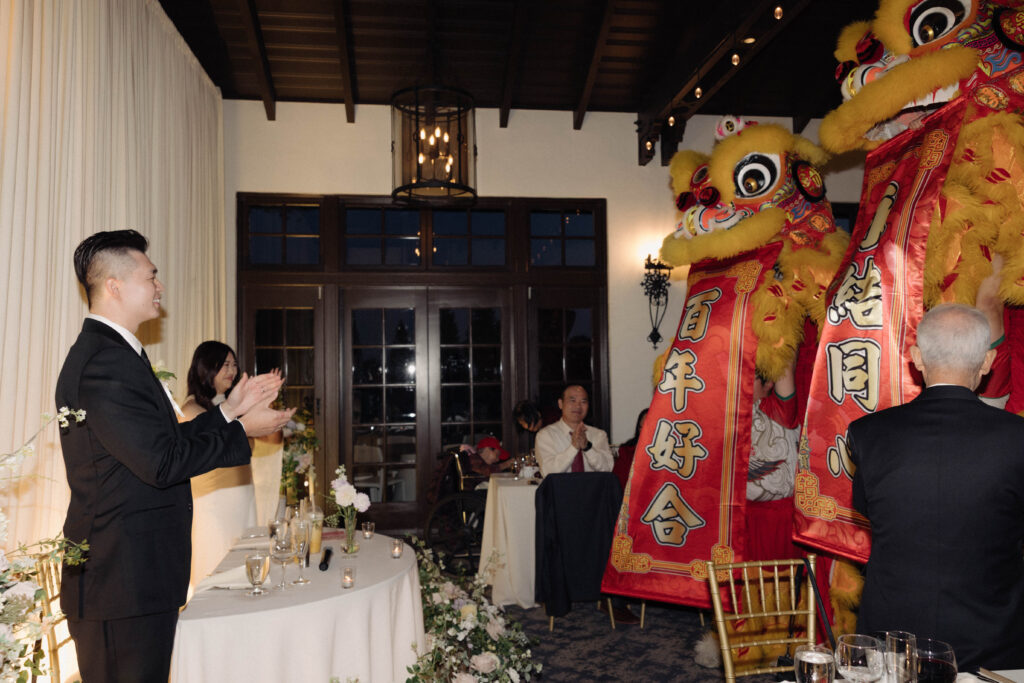 Y&B had a traditional Chinese lion dance during their wedding reception at Sequoyah Country Club in Oakland, California. This nod to their Asian culture and roots was such a meaningful part of their wedding day and brought so much energy into the room. As the dancers moved through the reception with the sound of drums and cymbals echoing around them, every single guest stopped what they were doing to watch. It was one of those moments that felt both deeply personal and incredibly communal, a beautiful way to honor tradition while creating an unforgettable experience for everyone there.