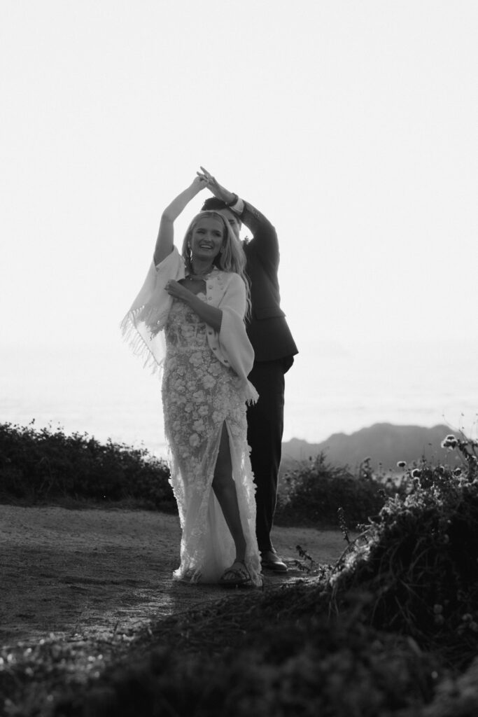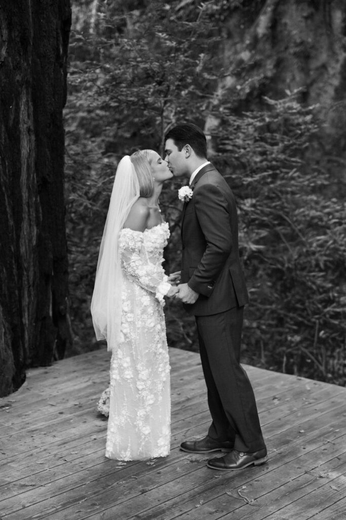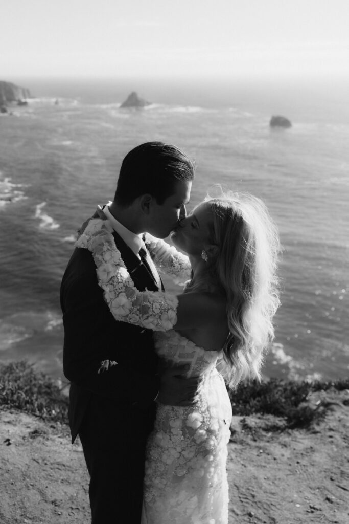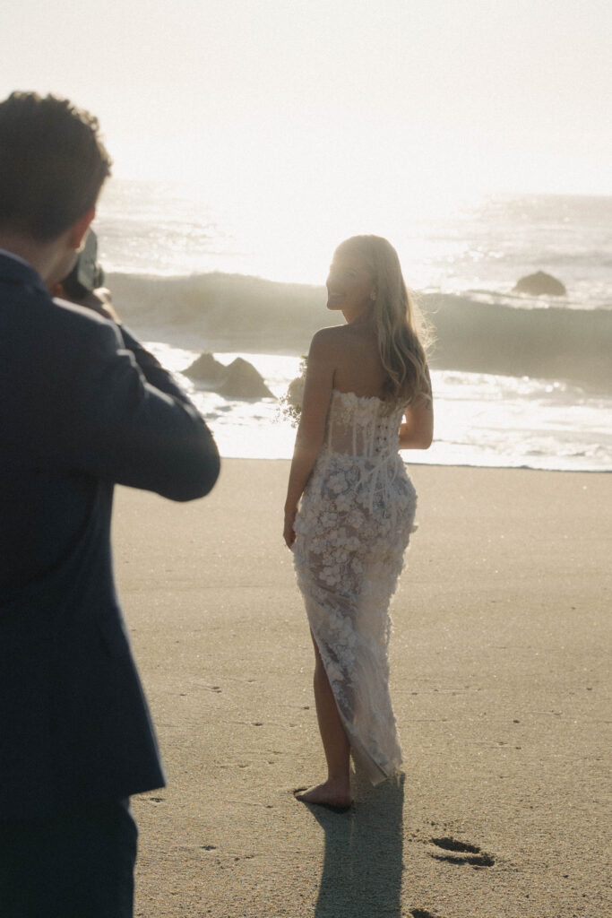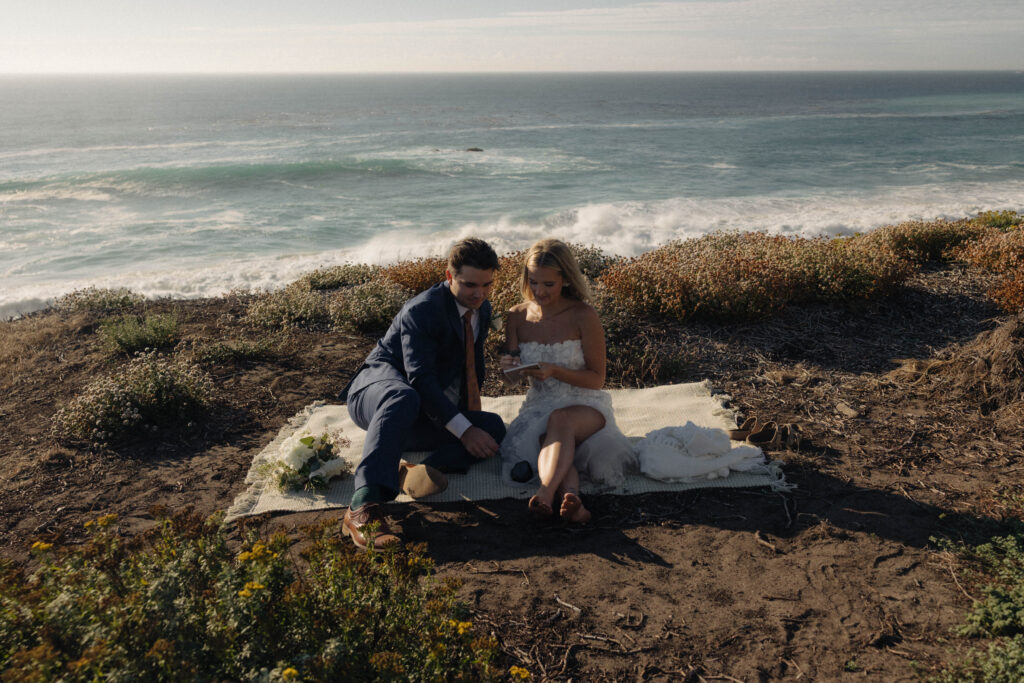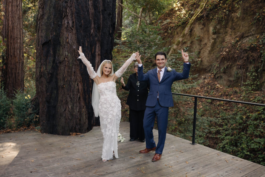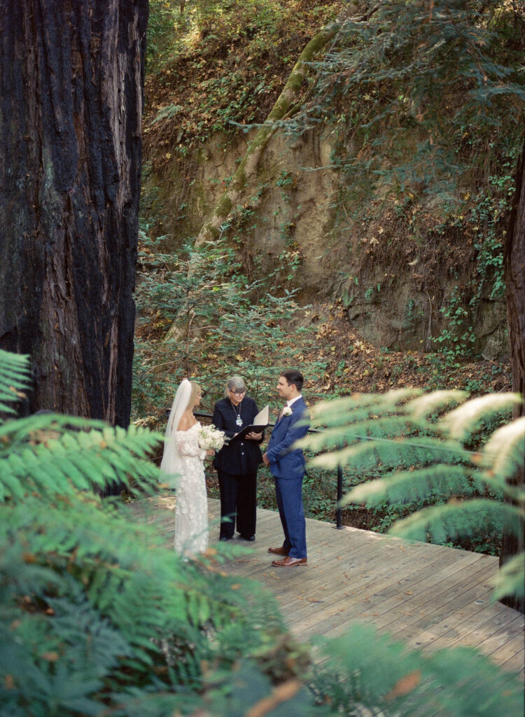We started the day at their Airbnb in Carmel, a spot I had referred them to and one that couldn’t have been more perfect. Surrounded by towering redwoods, the sweet owner of the Airbnb, officiated their ceremony, creating an intimate, heartfelt moment that felt worlds away from everything else. After their “I do’s,” they cut their cake and soaked it all in before we headed toward the Big Sur coast to explore.