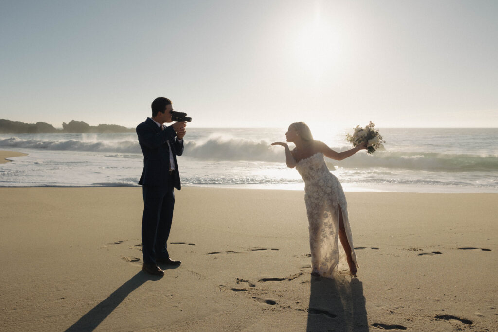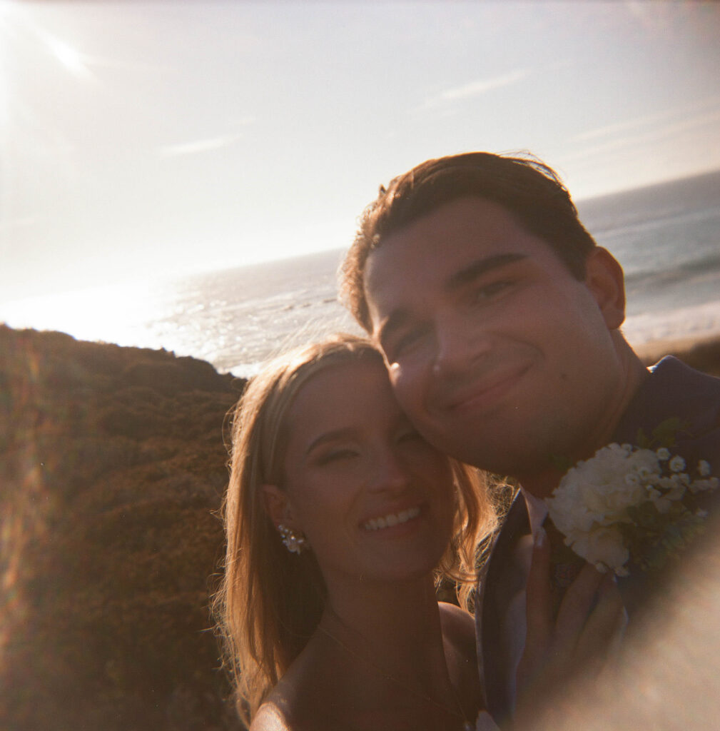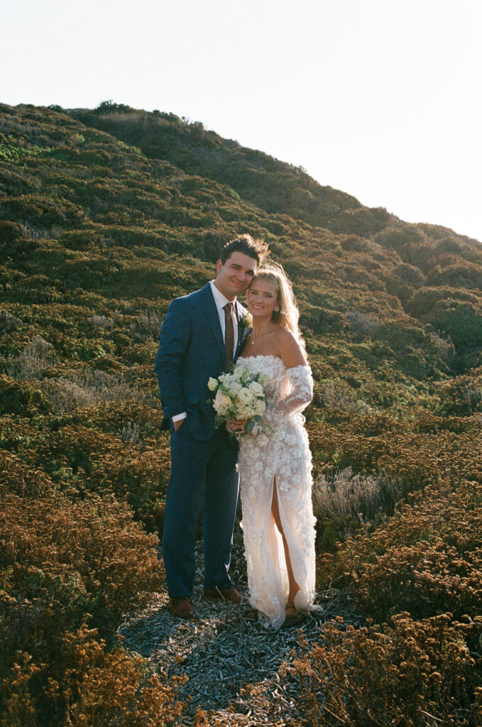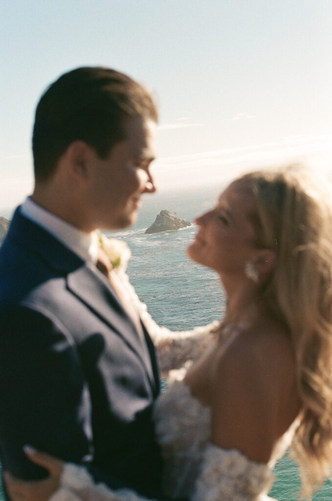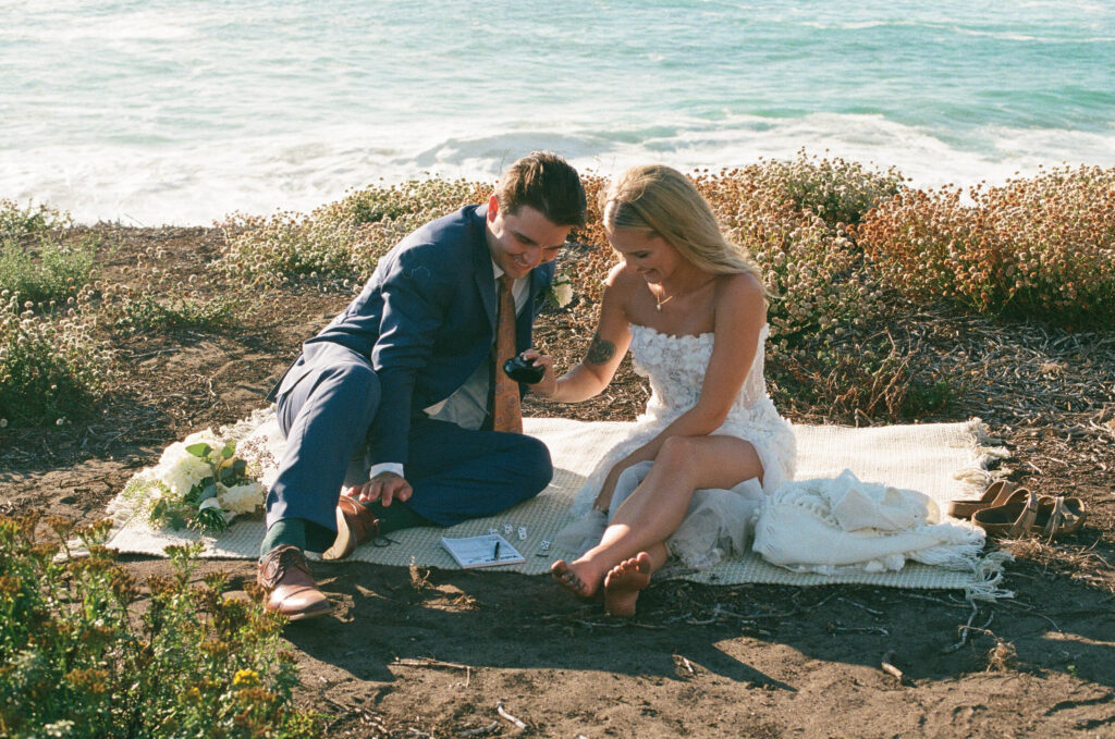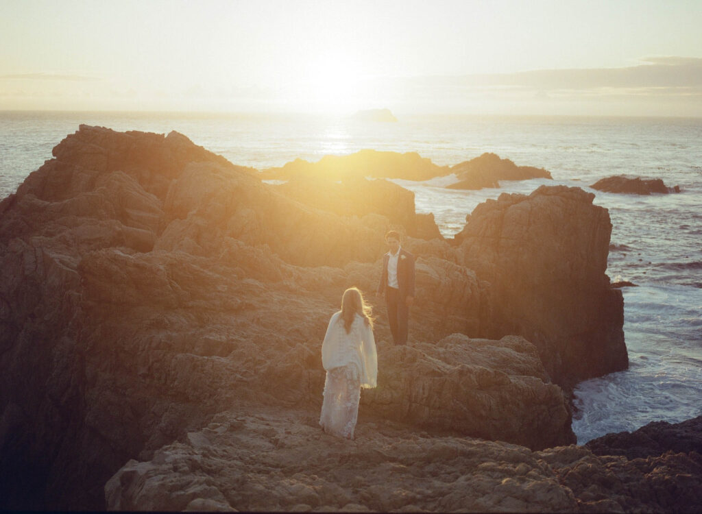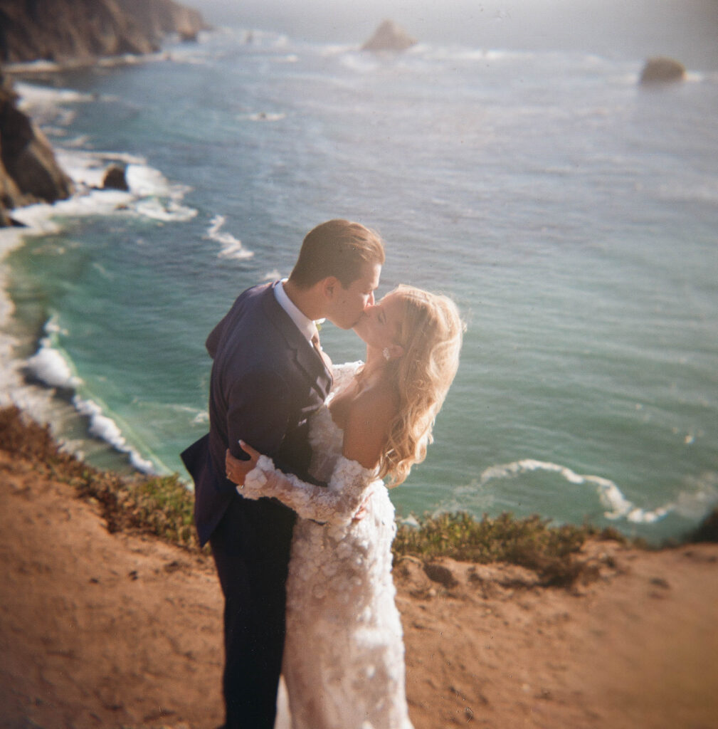 From there, the day unfolded naturally. Through digital, film, and Super 8 video, we documented their adventure as they wandered the cliffs and trails of Big Sur. Capturing their love was effortless. They’re the kind of couple whose connection just shows up without trying. At one cliffside stop, they squeezed in a quick game of Yahtzee, laughing and fully present with each other, before continuing down to the beach.