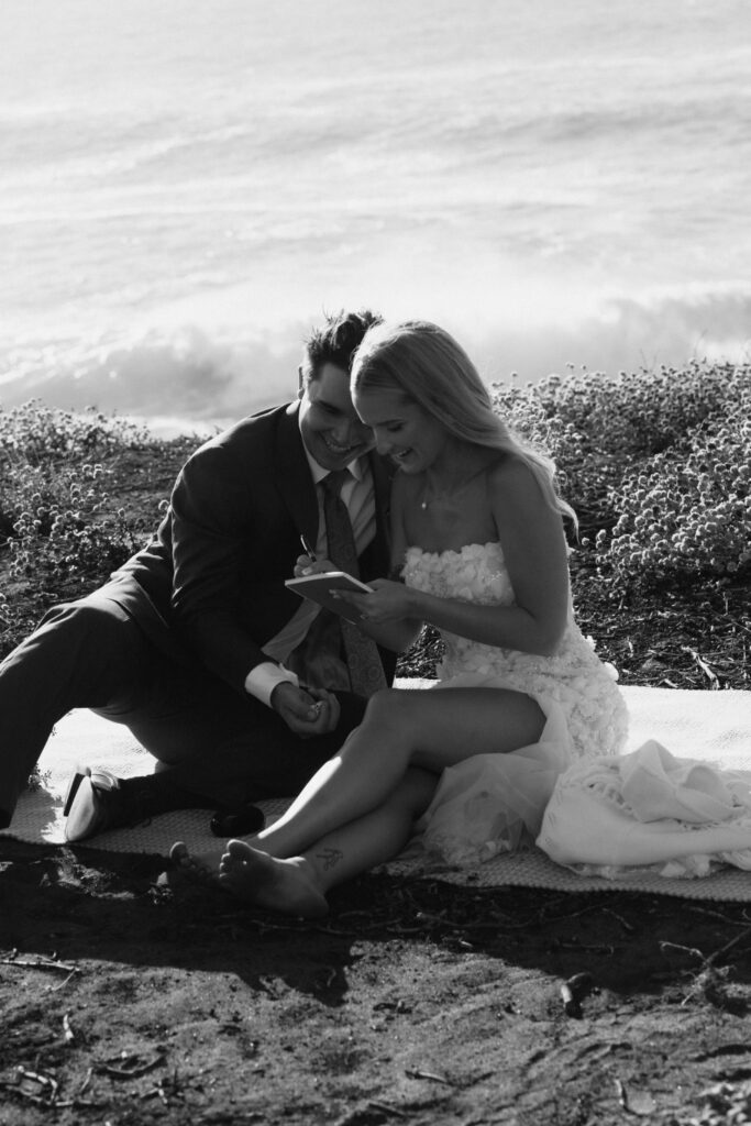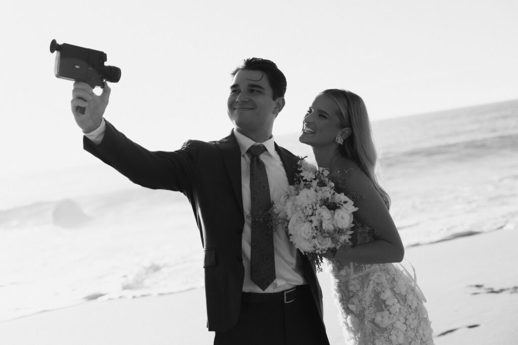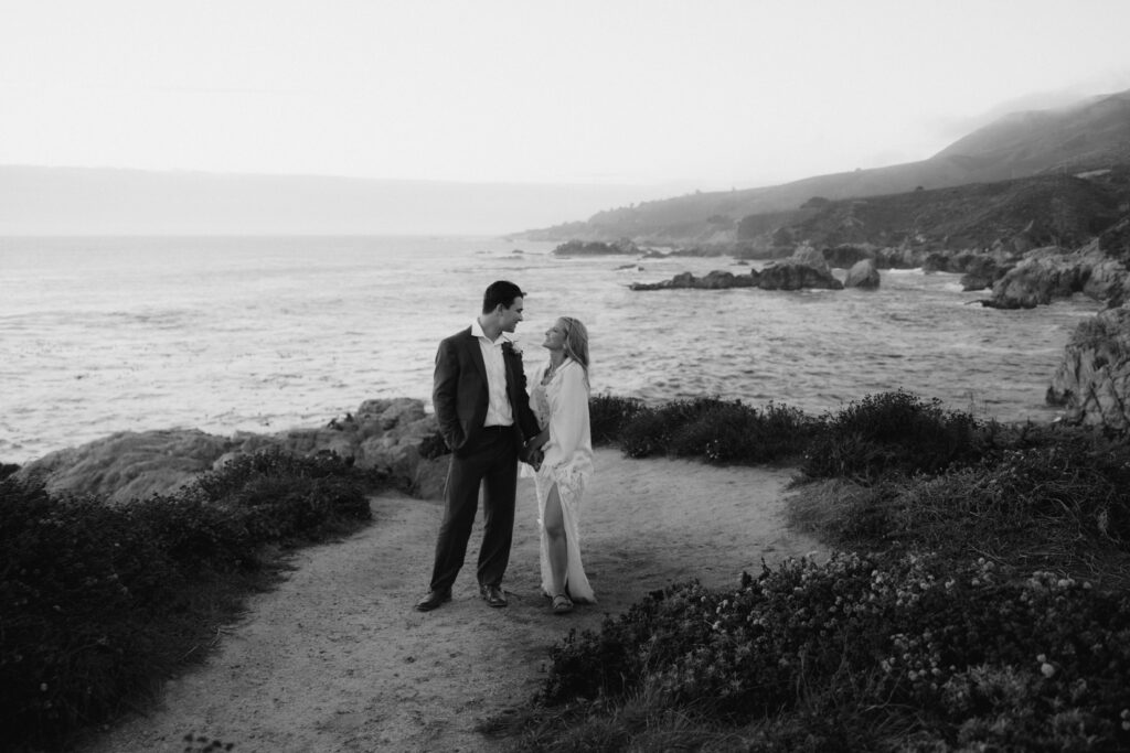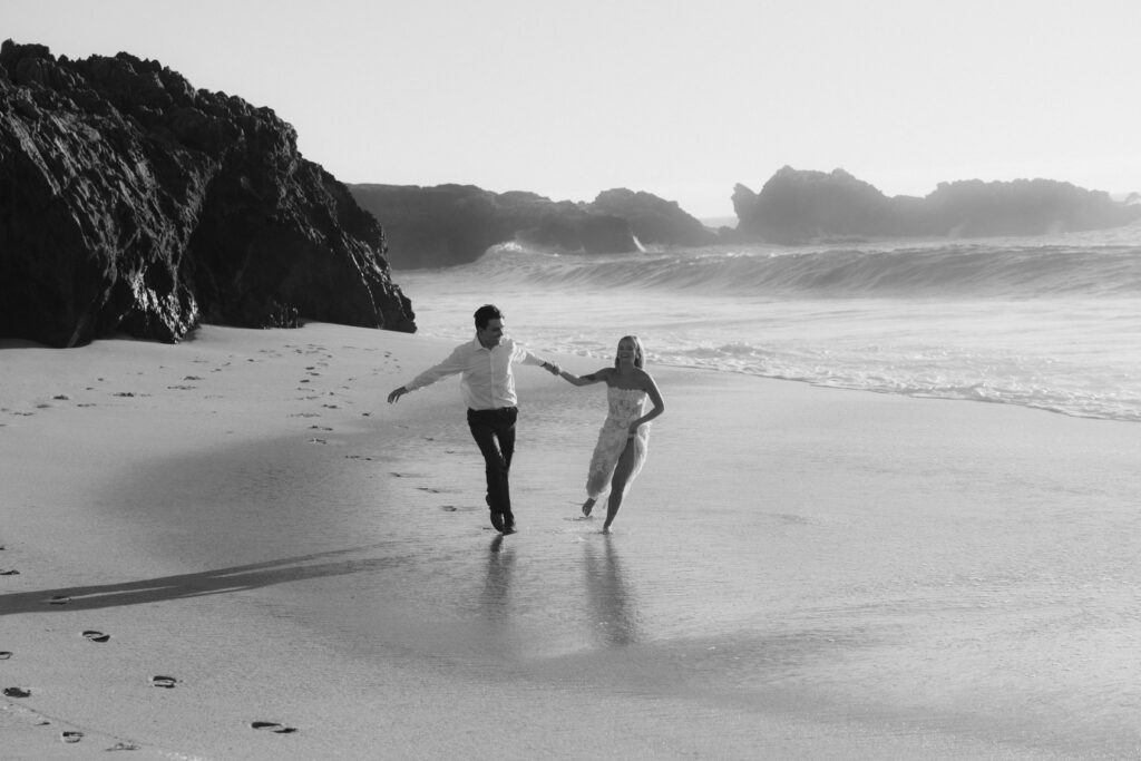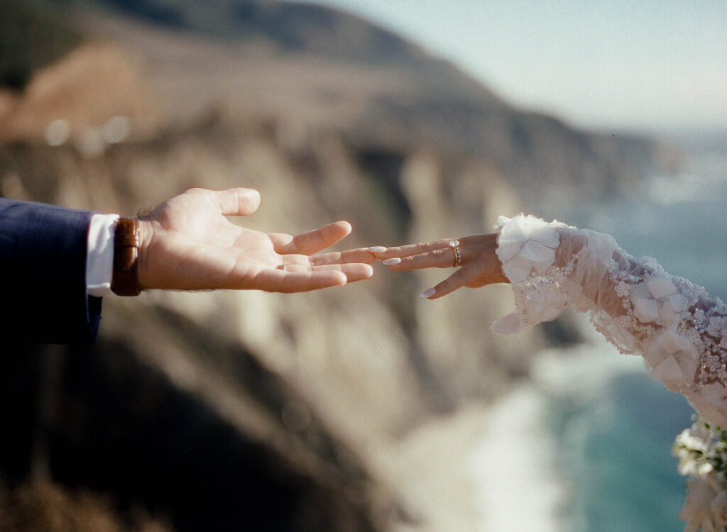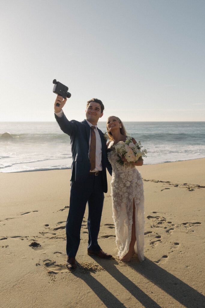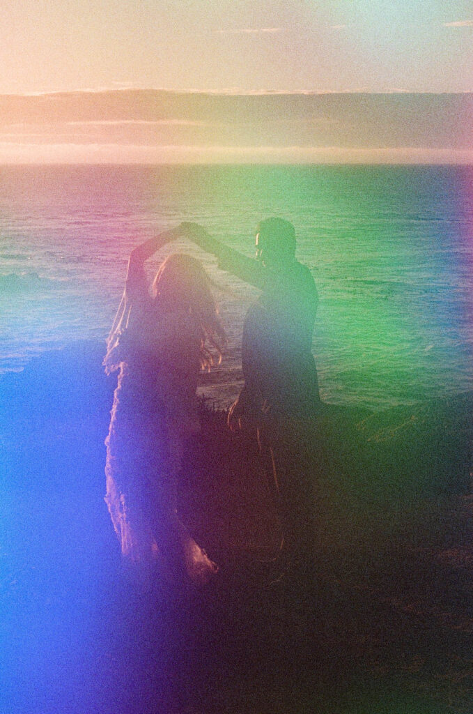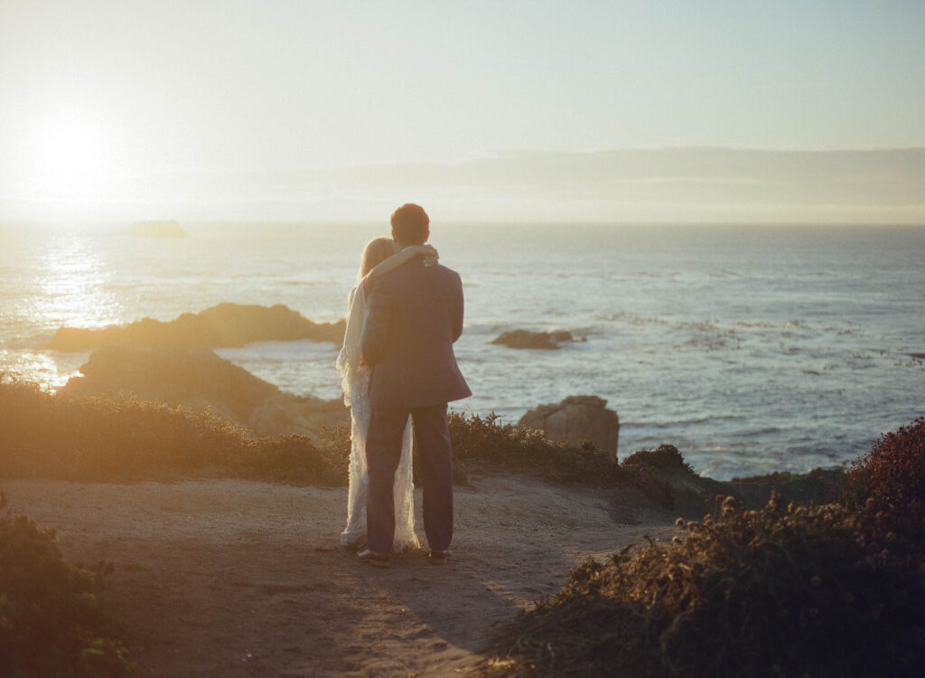 From there, the day unfolded naturally. Through digital, film, and Super 8 video, we documented their adventure as they wandered the cliffs and trails of Big Sur. Capturing their love was effortless. They’re the kind of couple whose connection just shows up without trying. At one cliffside stop, they squeezed in a quick game of Yahtzee, laughing and fully present with each other, before continuing down to the beach.