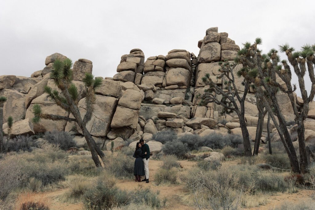 Some days in Joshua Tree feel like they’re handed to you on a silver platter, and this was one of them. M&B met me out at Cap Rock just as the rain finally let up. The whole desert was quiet, the air felt extra still, and the soft overcast sky wrapped everything in the dreamiest, even light. Honestly… it was photographer heaven.