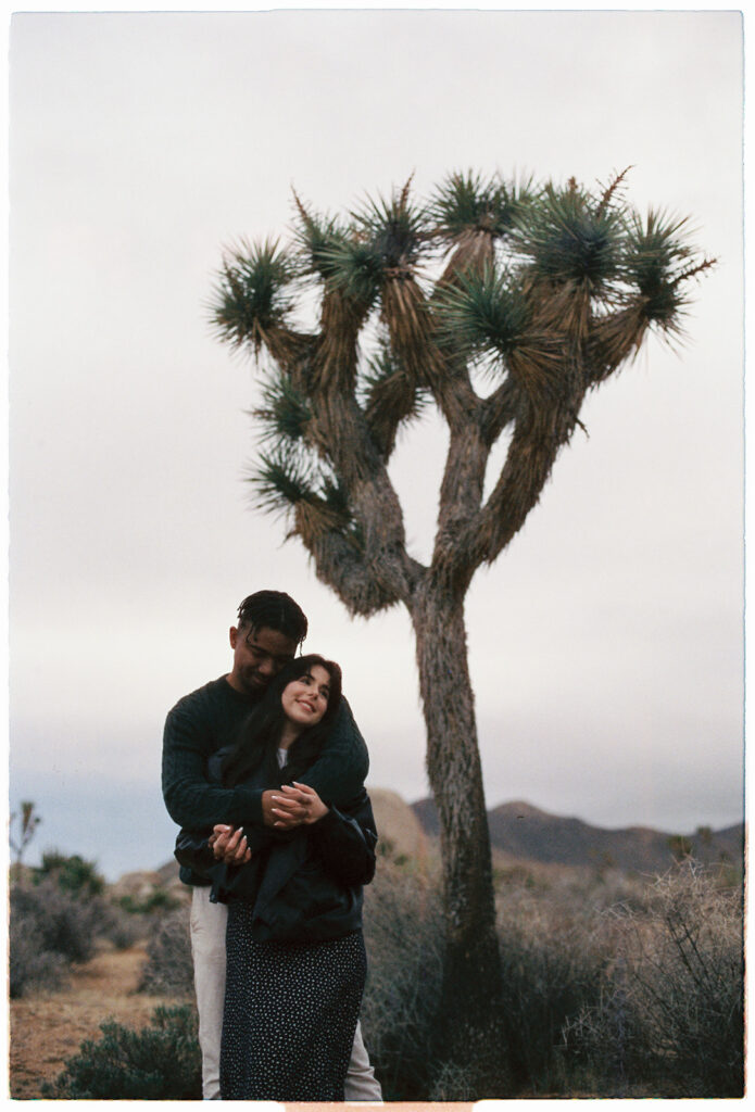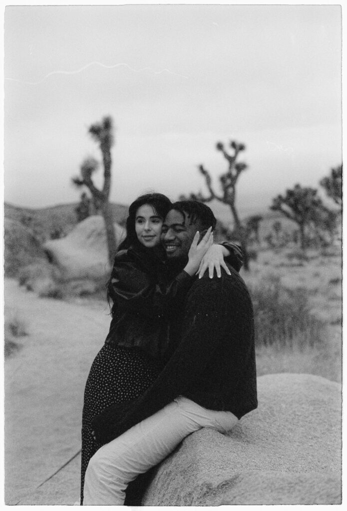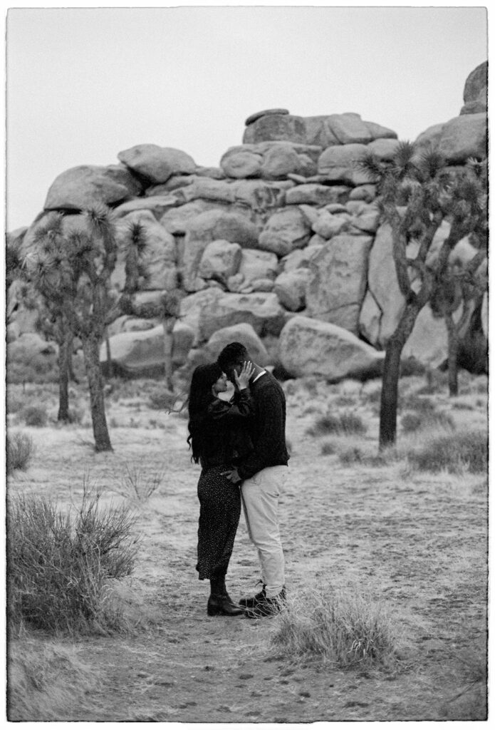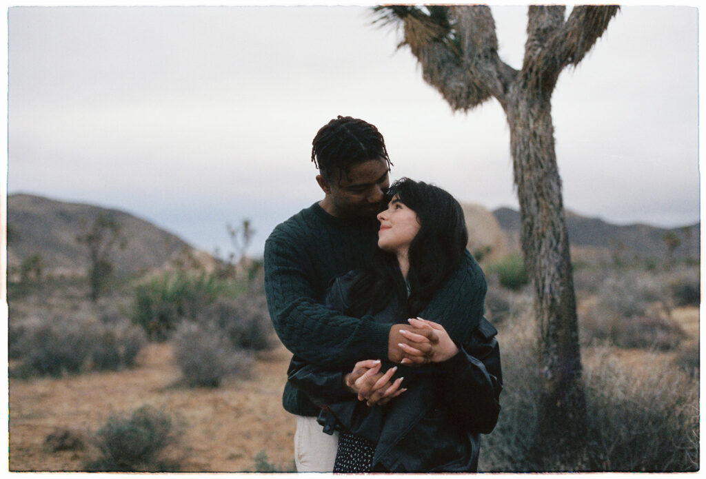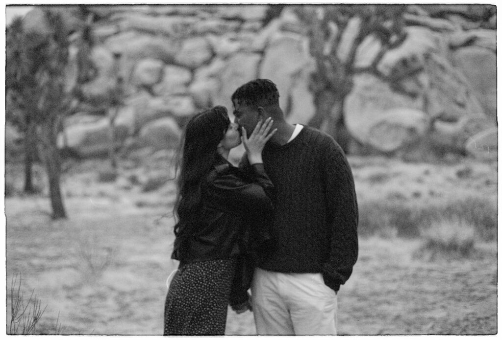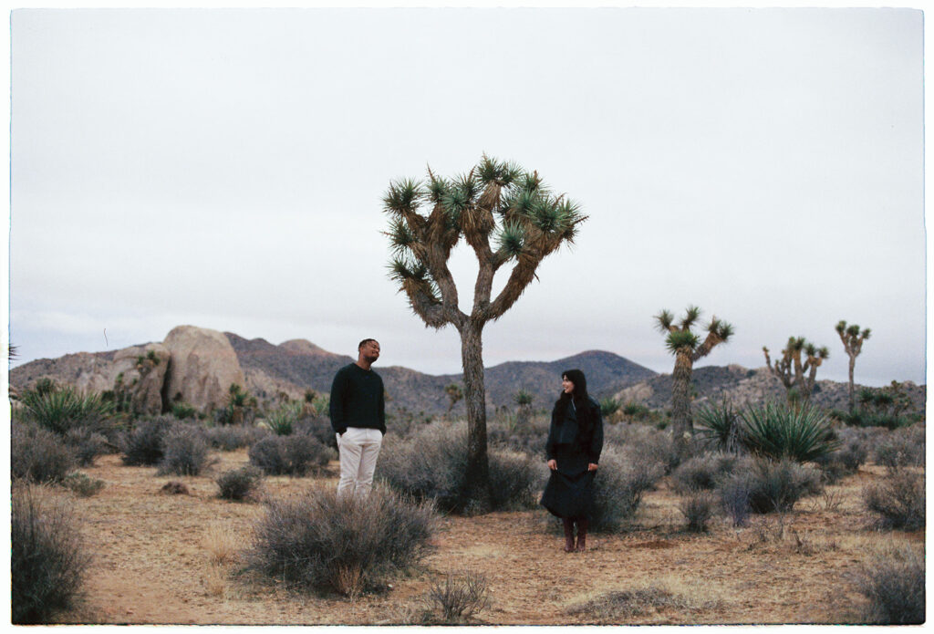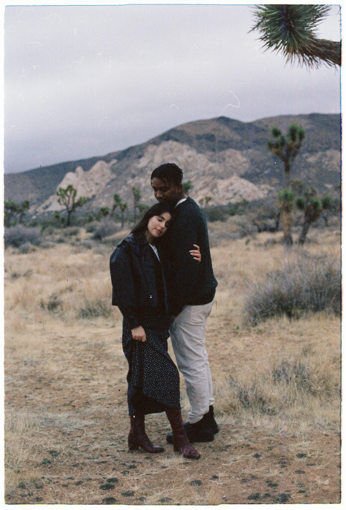 M&B spent most of the session wrapped up in each other, keeping each other warm, wandering around the boulders, and soaking in the fresh post-rain air. I left Cap Rock with a full heart, a bag full of freshly shot rolls, and the feeling that we’d caught Joshua Tree during one of its rare magical moods.