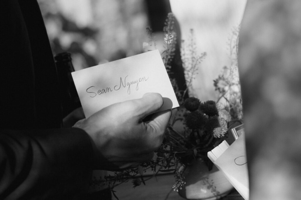 A, the bride, is an artist, and her creativity was woven into every detail. She designed all of their stationery and signage herself, and seeing her artwork sprinkled throughout the venue made everything feel extra personal. From the welcome signs to the menus to the little touches tucked around the property, it was like walking through pieces of their story. Most impressively, the seating chart was a hand-painted box filled with a unique painting for every single guest.