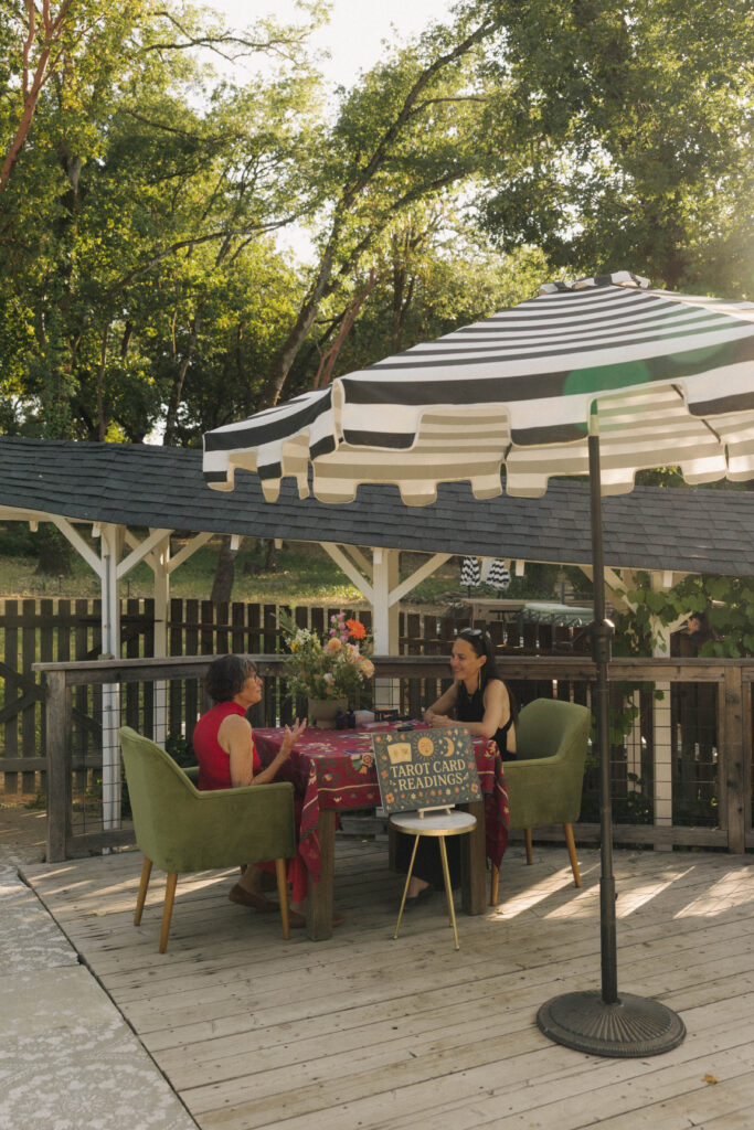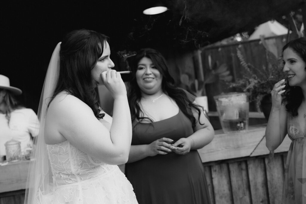 Yokayo Ranch already has a warm, relaxed vibe, but A&S made it entirely their own. They skipped the traditional approach and focused on what they genuinely love. There was a full oyster bar during cocktail hour, a tarot card reader who had guests lined up nonstop, and a weed bar that kept the mellow energy flowing all evening. Fun, intentional, and completely true to who they are.